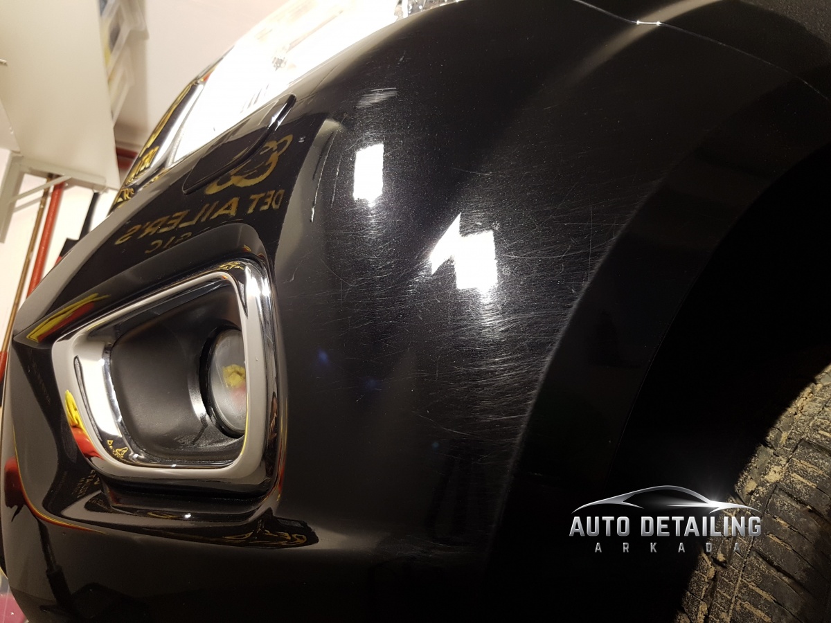 Prezentowany Nissan Navara ma niespełna rok i zaledwie 10 tys km a stan powłoki lakierniczej był w opłakanym stanie. Liczne hologramy, zmatowienia i wzdłużne rysy od "krzaków".